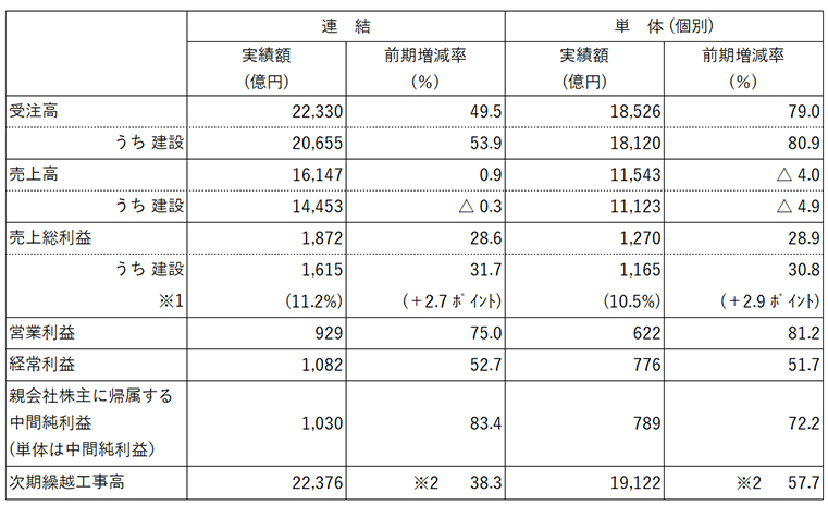 2025年度(2025/4~1月)の国内受注実績は15.45兆円で前年度同月比14.6%増加した。うち民間からの受注高は12.22兆円で同19.1%増加し、官公庁からの受注高は3.20兆円で同0.8%増加した。