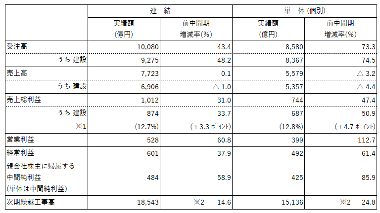2025年度(2025/4~8月)の国内受注実績は7.19兆円で前年度同月比16.2%増加した。うち民間からの受注高は5.95兆円で同26.4%増加し、官公庁からの受注高は1.23兆円で同-14.9%減少した。